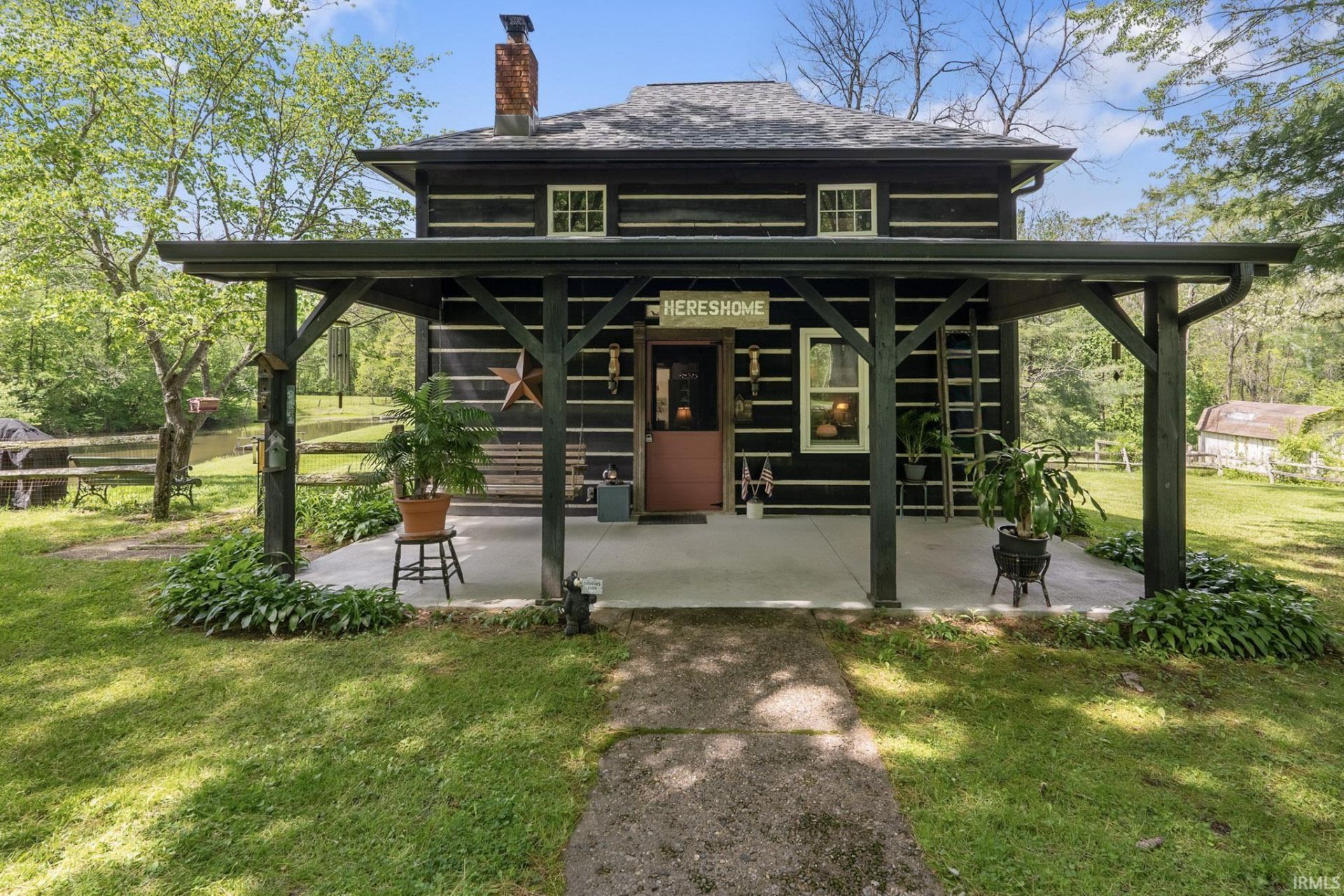 Nestled in a picturesque, park-like setting, this stunning 9.25-acre property offers the perfect blend of natural beauty and rustic charm-truly a Brown County dream. The rolling landscape features a fully stocked pond, mature trees, scenic views in every direction, and Bean Blossom Creek on the property. Ideal for nature lovers, gardeners, or hobby farmers, this property provides endless opportunities to enjoy the outdoors. A historic barn, believed to date back to 1915, adds both character and functionality, making it perfect for storage, livestock, or workshop space. A hand-dug well further reflects the property's rich history and rural appeal. A detached garage provides additional storage and convenience for vehicles, equipment, or recreational toys. The cozy, rustic cabin is perfectly positioned to overlook the land, offering peaceful views year-round. Inside, you'll find a warm and inviting atmosphere highlighted by a wood stove, creating the perfect cozy retreat during cooler months. The enclosed back porch serves as the dining room, filled with natural light and offering picturesque views of the property-an ideal space for everyday living or entertaining. The covered front porch provides a relaxing spot to unwind and take in the surrounding beauty. Recent updates include a new roof, gutters with guards, and water heater in 2024, offering modern peace of mind while maintaining the home's timeless character. Whether you're looking for a private retreat, weekend getaway, or full-time residence, this one-of-a-kind property captures the essence of Brown County living.